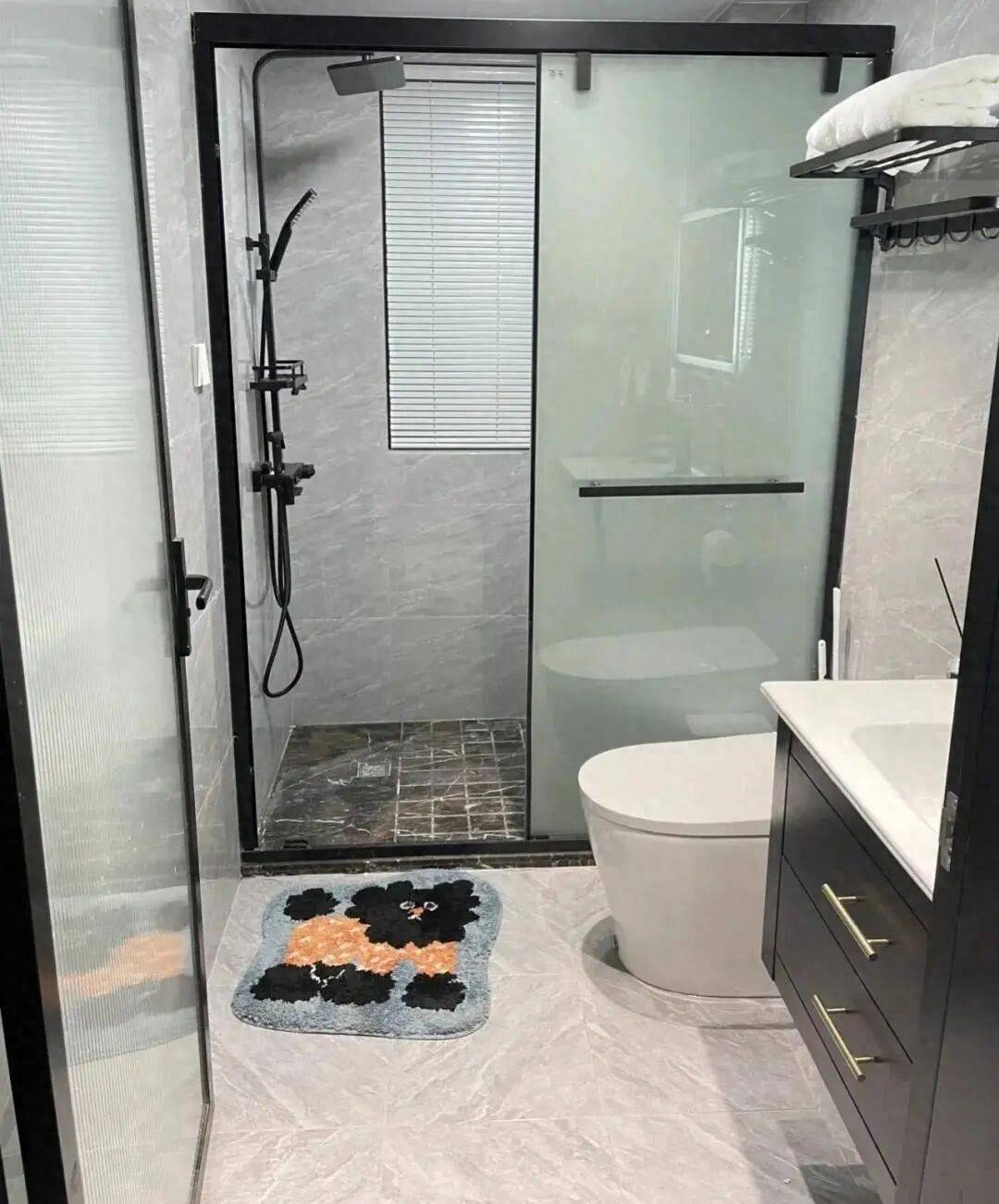 而且淋浴门内开,同样会占据淋浴区的空间,倒不如选择淋浴门外开,毕竟外边的面积相对要大一些。